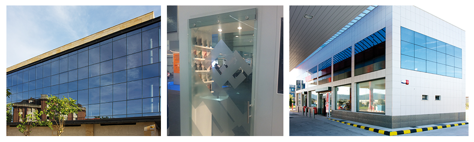 • Acristalamiento monolítico, escaparates, mamparas, barandillas, balcones, mobiliario urbano, acristalamiento simple...